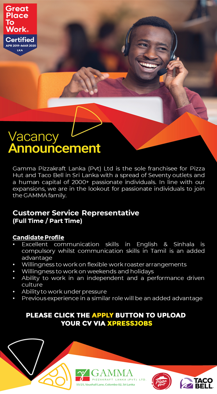 Customer Service Representative Full Time Part Time Pizza Hut Sri Lanka Xpressjobs